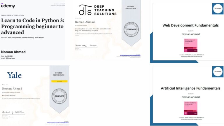 • Get certified in Python (Coursera certified). I built multiple programs and am currently exploring computer vision and AI.